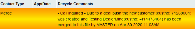 Before DealerMine would display as below, so users were not really sure why the customer’s file was merged.