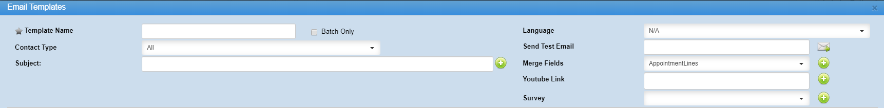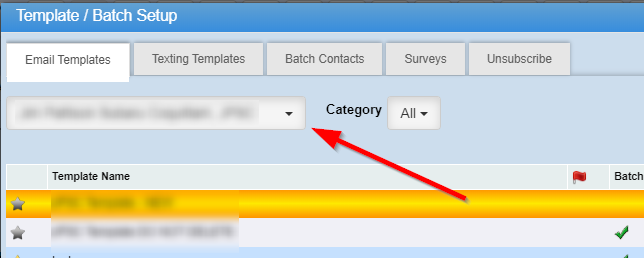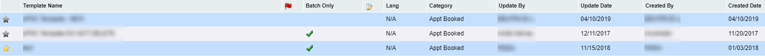 Batch Only - A green check mark under this header indicates the template was created only for batch and will not show as a template when manually sending an email.