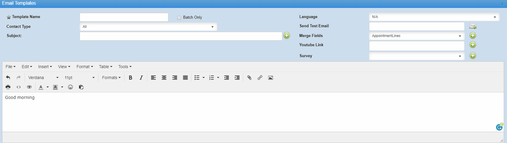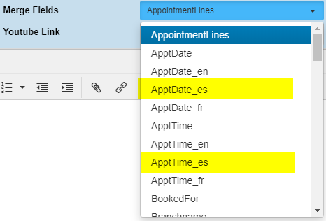 We have added four new merge fields << ApptDate_es >> and<< ApptTime_es >>. These merge fields have been added for users who wish to create bilingual templates, this would include Spanish and French or/and English scripting in one template.