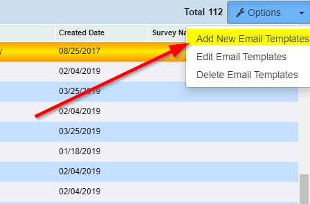 To add a new template click on options in the top right hand side and select 'Add New Email Template' from the drop down.