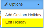 By clicking on the holiday and using the arrow the user can unblock and block holidays.