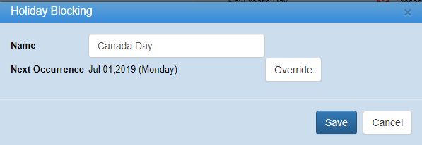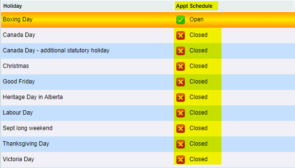 Holiday Blocking will block off the appointment schedule for the holidays marked closed.