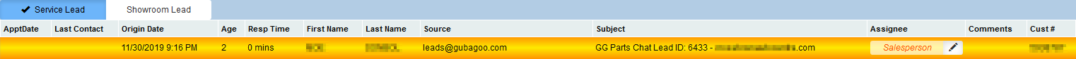 There are two tabs at the top of the lead to switch between service leads and showroom leads.Â
