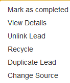 Mark as completed - allows the user to make the lead as completed