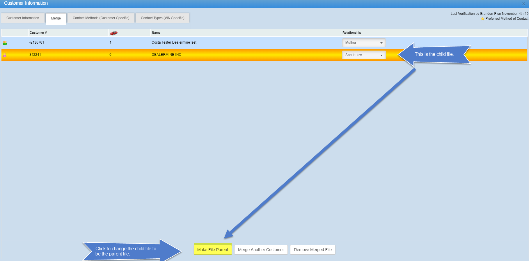 *The “Make File Parent” button will only be enabled when the child file is selected.Parent file
