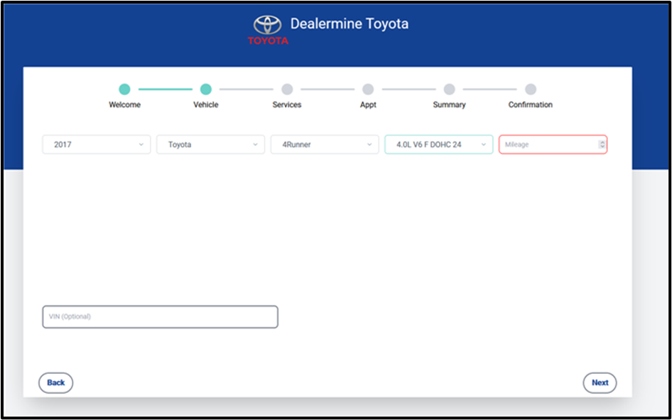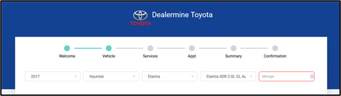 If the customer does not make any changes to the Year, Make, or Model, the VIN will carry throughout the appointment booking process and be added to the customer file in Dealermine, and subsequently pushed to the DMS.