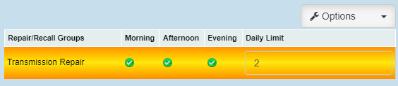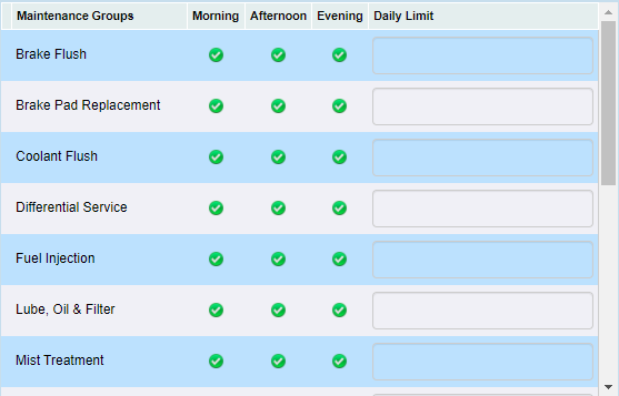 The user can also set up a daily limit for each maintenance group.