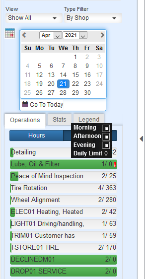 When there is a restriction on an Opcode the Operations tab will display a Red Info icon with a hover over tool tip showing what time of the day has the restriction.Â