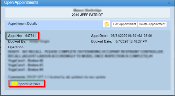 1. PBS - DealerMine now displays SPORD info on appointments that have SPORDs attachedÂ