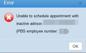 PBS - When booking an appointment in DealerMine if an inactive advisor is selected, DealerMine will now display an error message when trying to book an appointment.Â