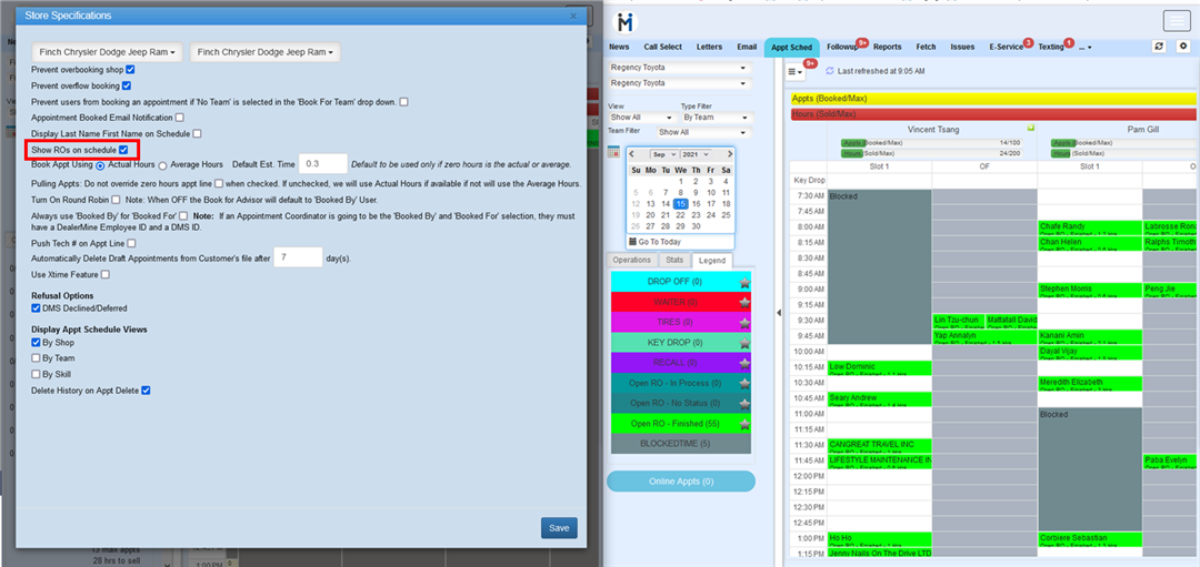 We have implemented a change to allow the Appointment Schedule so it will now display Finished RO’s beyond 7 days, when the option to show RO’s on Schedule is turned on by your bdc manager or account manager.