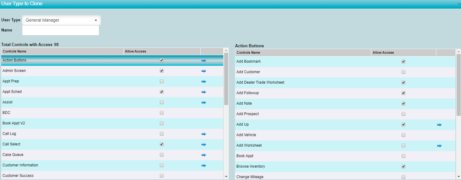 Click the blue arrow to view more accesses within the optionÂ