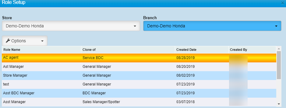 Select the Store/Branch you are creating the Role Setup for