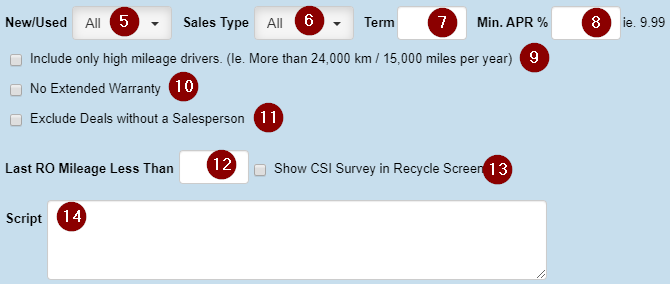 12. Enter a value for 'Last RO Mileage is Less Than'