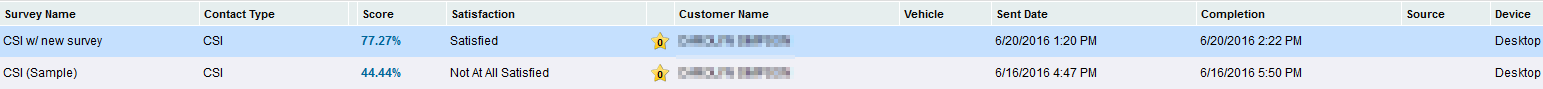 Survey History tracks all surveys that were sent to and received from the customer through DealerMine.