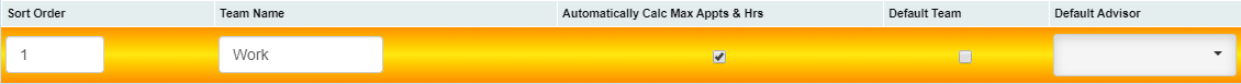 It's also possible to have a default advisor for the defaulted team, select the Default Advisor drop down, and select an advisor. Click Save. The default advisor now populates the Book for Advisor drop down on the Book Appointment Form.Â