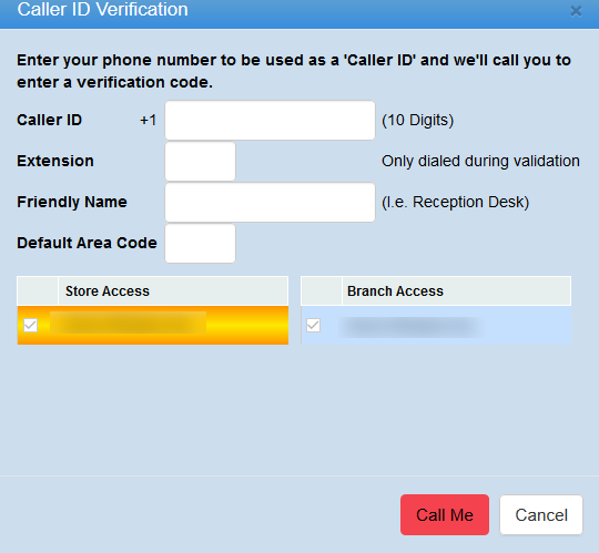Click "Call Me" to finalize the Caller ID Verification. The end user will either have to click Call Me to be able to see the six digit verification code to enter when the phone rings. Once the six digit code is entered a confirmation message will appear letting you know the Caller ID has been verified.Â