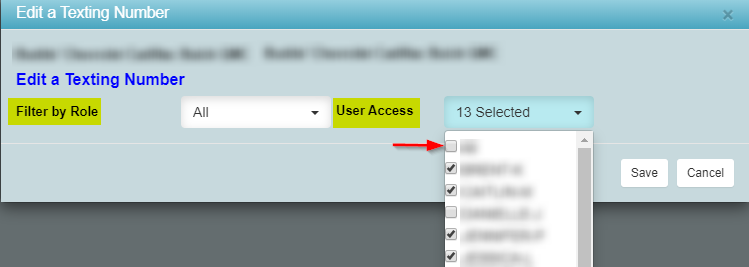 Texting Setup allows you to view the texting lines set up for you stores and branches and give users access to each individual texting line