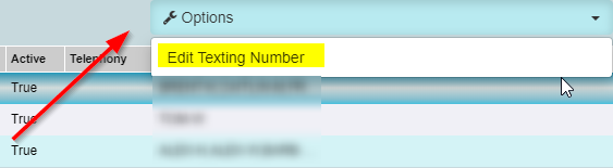 To give users access to use the texting lines click on options in the top right hand corner and select Edit Texting Number