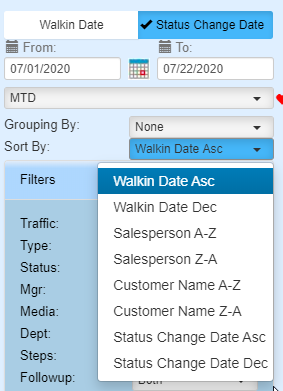 Users can view the traffic log by the date the status was changed by selecting 'Status Change Date' and use the status change ascending and descending to sort.
