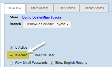 If, "Is Admin" is checked, it will allow the user to have full "User Setup" access.Â