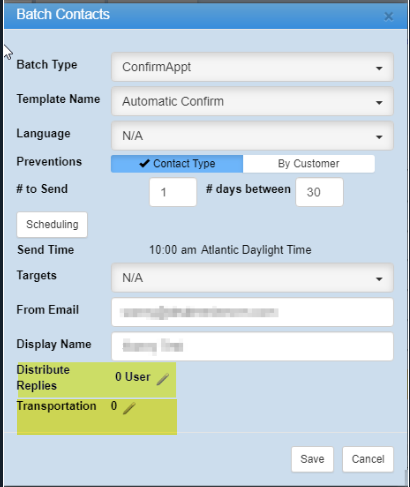 14. We have added a feature in “Templates & batch setup” > “Batch contacts” > “Emails”. When a user edits or adds a new batch contact, and the batch type is confirm appointment, you’ll see an option that says “Transportation”. When a transportation is chosen, DealerMine will send the email that corresponds to the transportation booked on the appointment. For example, this will be helpful for key drop appointments so the confirm appointment email sent to the customer won’t say that the time of their appointment is at 5:30am, (or whatever the key drop time is set to).