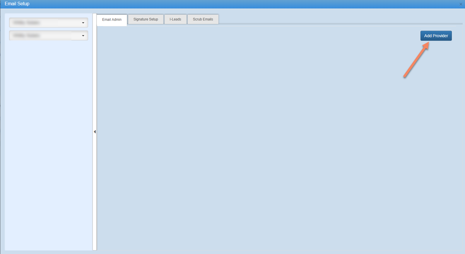 10. In the specification screen “Email Setup” > “Email Admin”, if a store/branch does not have an email provider, the only thing that will display in that tab of the spec screen will be “Add Provider”