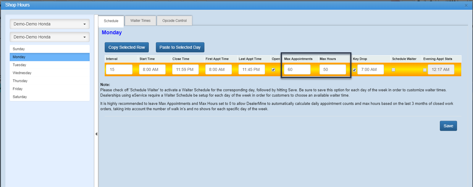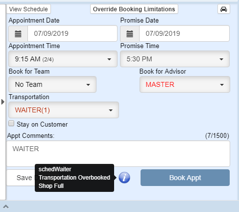 if over booking on an transportation code or opcode they will display in RED as a warning, however DealerMine will not prevent them from clicking Book Appt or Update Appt button.