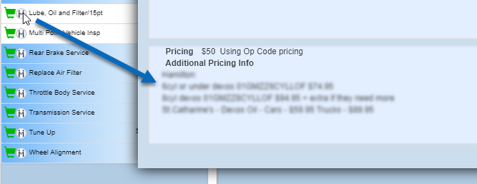 3. Maintenance pricing is now formatted to present more clearly on the profile screen under recommended services. Hover over a recommended service and pricing is now showing in more of a point form manner.