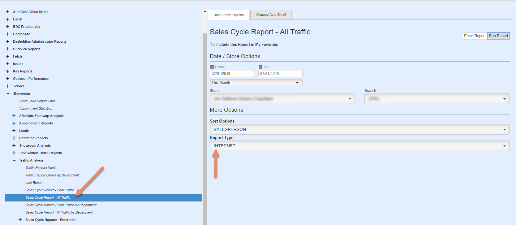 Now, in the Sales Cycle Report - All Traffic, users will see in the report type drop down - "Internet".