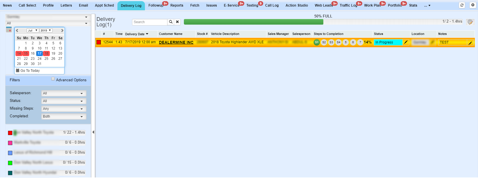 The Delivery Log allows users to input a delivery directly into DealerMine. Why work in two places when you can do it all in one?