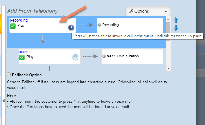 6. A new step has been added to the Call Queues, in Telephony configuration, which is an automatic recording telling the customer the call is being recorded for quality and training purposes.