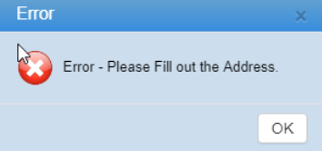 QUORUM - Quorum requires an address to be entered when creating a new customer. If an address is not entered user will now be presented with an error message, “Error - Please fill out the Address”.