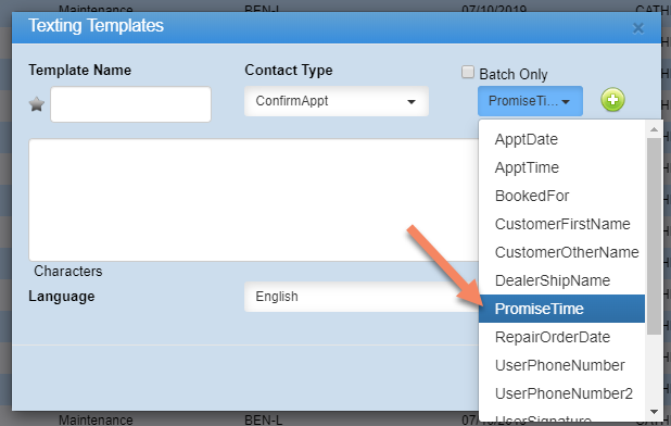 8. The merge field "Promise Time" is now available when creating/editing a Texting or Email template.