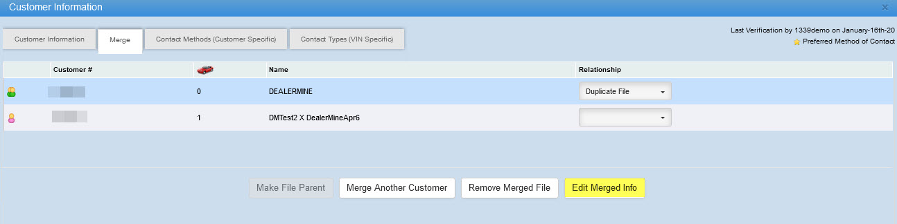 The Edit Merged info button will only display for dealerships that are using "Use Customer File Merge Screen ".