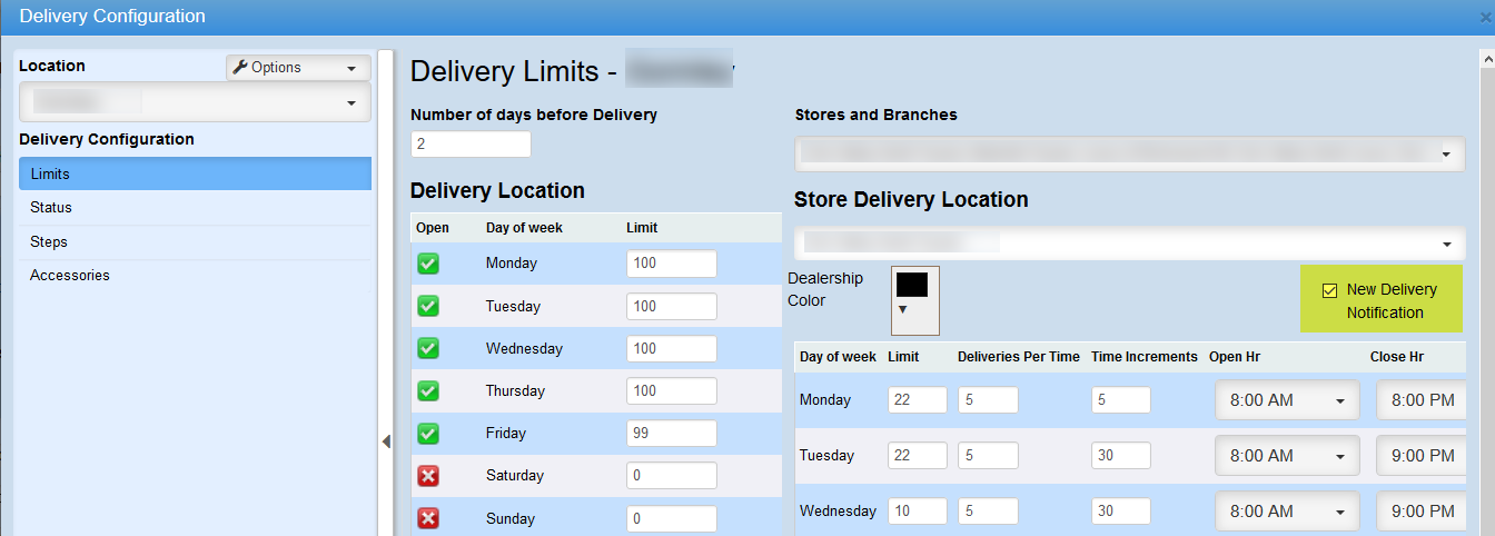 3. A new option has been added to the Delivery Configuration screen “New Delivery Notification” check box. The option is per Store/Branch and when turned on and a new delivery is saved, an email notification with a calendar invite will go out to the assigned salesperson with details about the delivery.