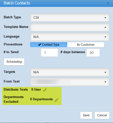 CSI batch schedules will have this option along with the option to exclude departments by selecting the pencil for "Departments Excluded". When the pencil is clicked the popup will display the departments that we pull from the DMS.