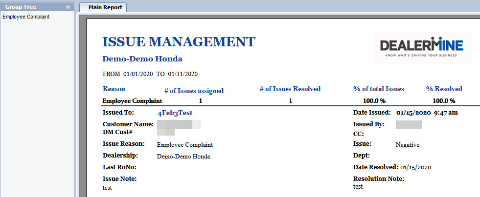 6. A new report has been added to the Reports tab "Issue Detailed Report", under Issues. The report can be ran by Date and has the sort options of, "Advisor" or "Reason" and by "My Unresolved" and "My Resolved". This report will pull and display the following information;