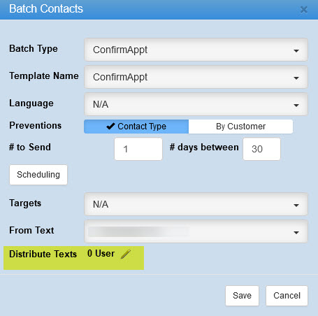 16. When creating a Batch schedule users now have the option to "Round Robin" by clicking on "Distribute Text", a user list will display in a popup, and the users that display will depend on the Batch Type selected.