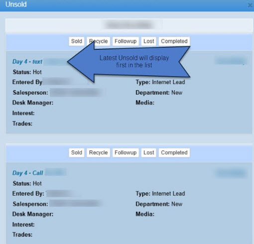 When this option is On and a user pulls Unsold Contacts from the Call Select, when clicking the Unsold indicator from the customer's profile the popup will display all Unsold schedules due for that customer. The latest Unsold schedule will display at the top