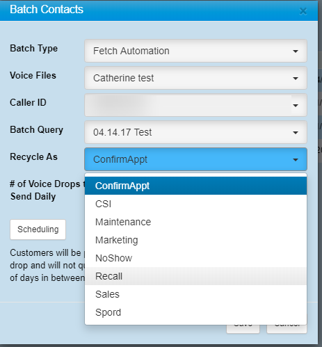 8. To better improve Batch Contacts for recalls we have added a Batch Type Recall option and Recycle As Recall option.Â