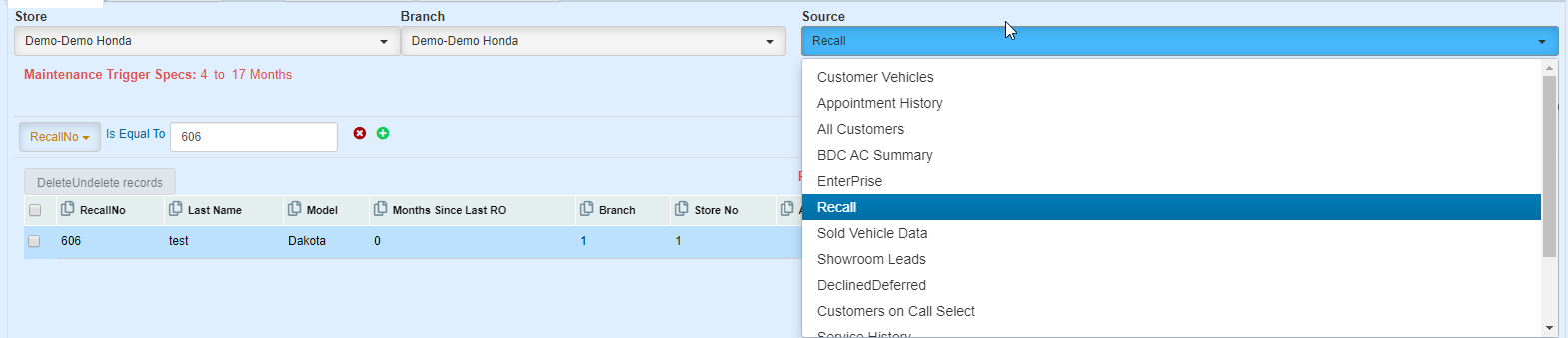 6. We have added the ability to Fetch Recall Data for VINs that are on and off the call select screen. To take advantage of this option go to Fetch and change the source to Recall