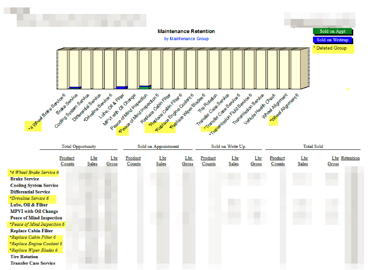 10. On the Maintenance retention report, if there are any Maintenance groups that were deleted they will now display in Italics with an astric as displayed in the screen shot. Â