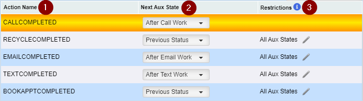 Restrictions- List of the Aux States the user must be in when that Action in DM is completed for the Action trigger to work