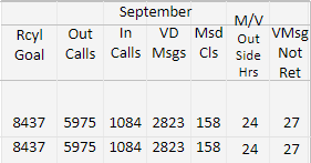 Answer Rate - The goal for answer rate is 80% We calculate answer rate by (In calls – Missed Calls – Voice Messages + M/V Outside Hrs) / In calls
