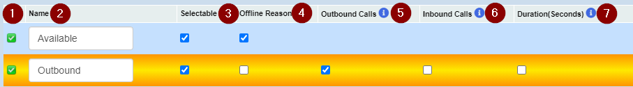 Outbound Call - If checked users can make outbound calls in this state if not checked users can not make outbound calls in this state