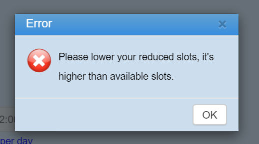 3. We have added an error message to the eservice config screen when updating the number of reduce slots exceeds available slots on the appointment schedule. Similar safeties have been put in place on the advisor set up screen.