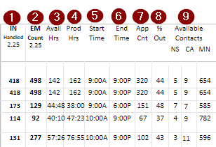 Avg Mins per In - The average time spent on an inbound call in minutes