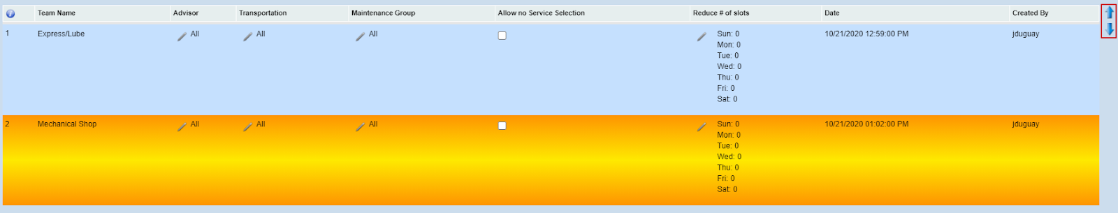 The priority can be adjusted using the arrows on the right with the top Team being priority 1 and so on so forth.