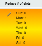 Reduce the number of slots allows you to reduce the number of slots available to be booked by Team by day. As example if you would like to only allow your Express Team to have 2 of their 3 8am appointments booked through eService on Mondays you would reduce the number of slots available for the Team on Monday by 1.